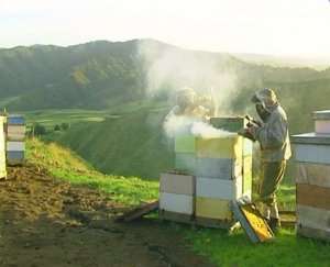 After several weeks, the beekeepers head out to collect the honey. Each of the boxes in the hive is called a super and every collection run sees hundreds of supers picked up from all over the central North Island. The loaded truck returns to the factory where the honey-laden supers are unloaded into the storage area.